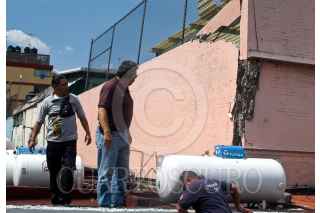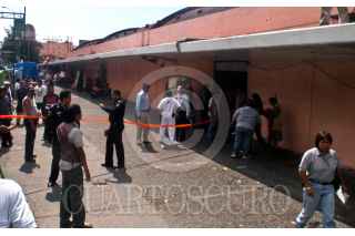 MÉXICO, D.F., 08JULIO2009.- Fuerte movilización se registró en las inmediaciones del Mercado de "La Lagunilla", en el que una barda se fracturo debido a la humedad del lugar en el area de Restaurantes, por lo que acudieron elementos de Proteccion Civil para valorar los daños. FOTO: LUIS CARBAYO/CUARTOSCURO.COM