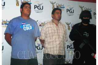 MÉXICO, D.F., 08JULIO2009.- José Alberto Hernández Trejo y Pedro Armando Sánchez, de 28 y 18 años de edad, respectivamente, fueron presentados y detenidos por elementos de la Secretaría de Seguridad Pública, en calles de la colonia Granada, delegación Miguel Hidalgo, cuando estos dos sujetos llevaban a una persona privada de su libertad a bordo de un taxi, tambien se les relaciona con cuatro averiguaciones previas, en las que sus víctimas los identificaron. FOTO: LUIS CARBAYO/CUARTOSCURO.COM