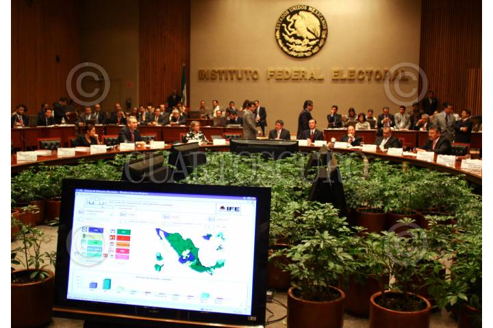 MÉXICO, D.F., 10JULIO2009.- Leonardo Valdes Zurita consejero presidente es felicitado por los demas consejeros electorales pal termino de la Sesion Extraordinaria del Consejo General del Instituto Federal Electoral FOTO:SÁSHENKA GUTIÉRREZ/CUARTOSCURO.COM