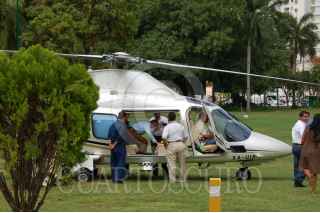 ACAPULCO, GUERRERO, 10JULIO2009.- El gobernador de Guerrero Zeferino Torreblanca viaja en un lujoso helicóptero luego de asistir a un evento realizado en el área verde del Centro Internacional Acapulco donde estuvo acompañado de abogados y el alcalde Manuel Añorve Baños. FOTO: MARINO D. VALDEZ/CUARTOSCURO.COM