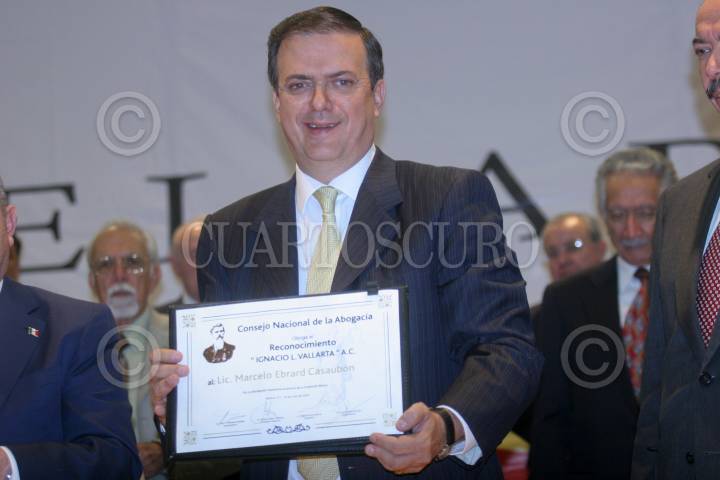 MÉXICO, D.F., 10JULIO2009.- El periodista Jacobo Zabludovsky y Marcelo Ebrard, jefe de gobierno capitalino, durante la entrega de reconocimiento a abogados destacados esto durante el marco del dia del abogado. FOTO: RICARDO CASTELAN/CUARTOSCURO.COM