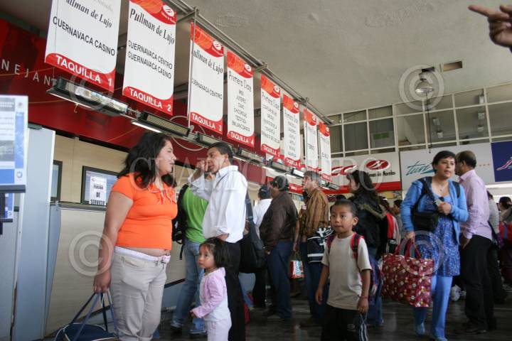 MÉXICO, D.F., 11JULIO2009.- Cientos de personas salen a vacacionar por la central camionera del sur, las lineas de transporte han tenido que implementar corridas extras a los puntos turisticos con mayor demanda, incluso los vacacionistas permanecen formados dos horas para comprar sus voletos. FOTO: RICARDO CASTELAN/CUARTOSCURO