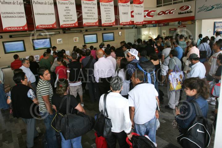 MÉXICO, D.F., 11JULIO2009.- Cientos de personas salen a vacacionar por la central camionera del sur, las lineas de transporte han tenido que implementar corridas extras a los puntos turisticos con mayor demanda, incluso los vacacionistas permanecen formados dos horas para comprar sus voletos. FOTO: RICARDO CASTELAN/CUARTOSCURO