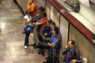 MÉXICO, D.F., 11JULIO2009.- "Los vagoneros" , así son llamados comunmente los venderores ambulantes que ofrecen sus productos en los vagones del sistema de transporte colectivo FOTO: SÁSHENKA GUTIÉRREZ/CUARTOSCURO.COM