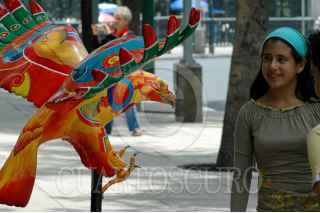 MÉXICO D.F., 12JULIO2009.- Un niño observa una escultura de un Aguila como parte de la exposición "Animal Celebration" que se exhibe sobre el Paseo de la Reforma, en la que se exponen animales en peligro de extinción como rinocerontes, águilas reales y quetzales. FOTO: RODOLFO ANGULO/CUARTOSCURO.COM