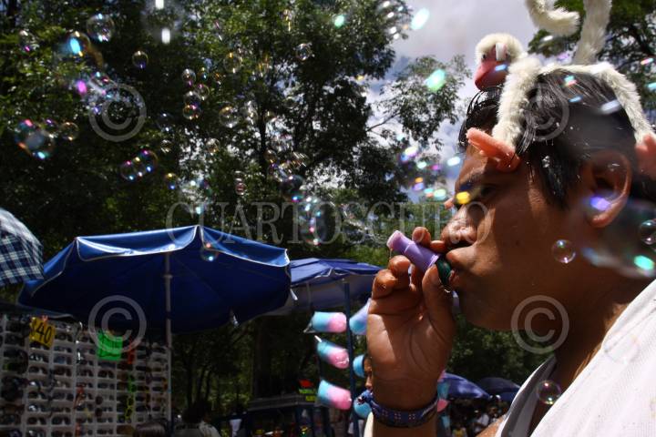 MÉXICO D.F., 12JULIO2009.- Un vendedor de burbujas de jabón realiza su labor en el Bosque de Chapultepec FOTO: SÁSHENKA GUTIÉRREZ/CUARTOSCURO.COM