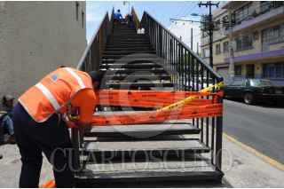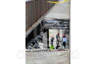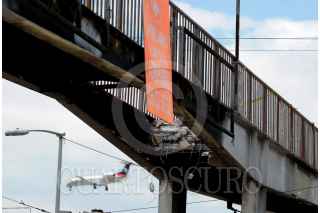 MÉXICO, D.F., 13JULIO2009.- Un puente peatonal ubicado en Circuito Interior a la altura de Norte 13 en la colonia Moctezuma quedo severamentee dañado luego de que fuera impactado por un trailer el cual excedía las dimenciones de altura, dejando un gran boquete en dicho puente al caer el concreto del piso de este importante paso peatonal. dicho vehículo fue puesto a disposición del Ministerio Publico en esa demarcación FOTO: LUIS CARBAYO/CUARTOSCURO.COM
