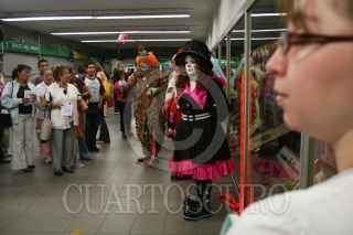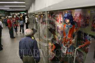 MÉXICO D.F. 13JULIO2009.- En la estación del metro, Salto del Agua, se inauguro la exposición “60 Años de Payasos en México” la cual muestra parte de las vestimentas fotos carteles zapatos y diversos utensilios que se utilizan para realizar su trabajo, esto en el corredor del trasborde de esta estación. FOTO: GUILLERMO PEREA/CUARTOSCURO.COM