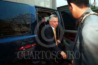 Rafael Macedo de la Concha, Procurador General de la República, a su llegada a la comida que la comunidaa en México organizó en su honor. Macedo de la concha declaró a reporteros que lo esperaban que se esta investigando si el cadaver de una de las personas que fueron acribilladas en el interior de una Burger King la semana pasada, es el de uno de los hermanos Arellano Félix. FOTO: Pedro Mera/CUARTOSCURO.COM