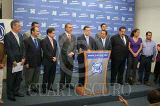 MÉXICO, D.F., 13JULIO2009.- German Martinez Cazares, ex presidente nacional del PAN, informo que se realizara una elección interna para elegir al nuevo presidente que terminara el periodo de este. Esto después de una sesión a puerta serrada que realizaron lideres panistas en su cede nacional que duro mas de 6 horas. FOTO: RICARDO CASTELAN/CUARTOSCURO.COM