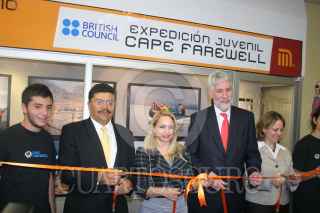 MÉXICO, D.F., 15JULIO2009.- Francisco Bojorquez, director del Metro, el embajador Britanico en México Giles Paxman y Martha Delgado Secretaria de Medio Ambiente, durante la inauguración de la Exposición fotográfica "EXPEDICIÓN JUVENIL CAPE FAREWELL" que se puede disfrutar en la estación del Metro Auditorio. FOTO: RICARDO CASTELAN/CUARTOSCURO.COM