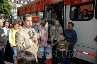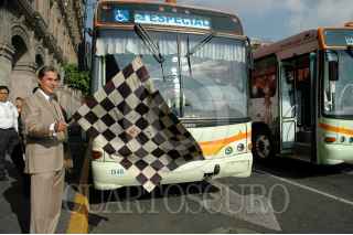MÉXICO, D.F., 15JULIO2009.- El secretario de turismo Alejandro Rojas Diaz Duran durante el banderazo de salida de los autobuses del RTP para el programa "Turismo para ti" que recorrerá diferentes sitios turísticos en todo el Distrito Federal. FOTO:RODOLFO ANGULO/CUARTOSCURO.COM