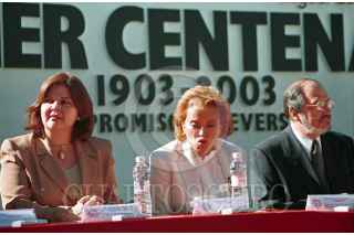 Elba Esther Gordillo, secretaria general del PRI, junto con Marco Polo, subcretario de educación y Margarita Elena Tapia Delegada de Iztacalco, durante la cerémonia del Centenario de la Escuela Secundaria No. 1 "Miguel Lerdo de Tejada". FOTO: Eunice Adorno/CUARTOSCURO.COM