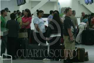 MÉXICO, D.F., 16JULIO2009.- Decenas de personas acudieron al aeropuerto de la ciudad de México, para cambiar sus vuelos que tenían programados debido a que Canadá pide visa a los connacionales para entrar a su país. FOTO:RICARDO CASTELAN/CUARTOSCURO.COM