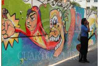 ECATEPEC, ESTADO DE MÉXICO, 17JULIO2009.- Un grafitti del Chapulin Colorado, héroe de la televisión mexicana, se encuentra pintado a espaldas del palacio municipal de Ecatepec, en una barda de madera que cubre las obras del edificio del Centro de Operaciones de Seguridad Pública y Protección Civil municipal. FOTO: MARIO NULO/CUARTOSCURO.COM