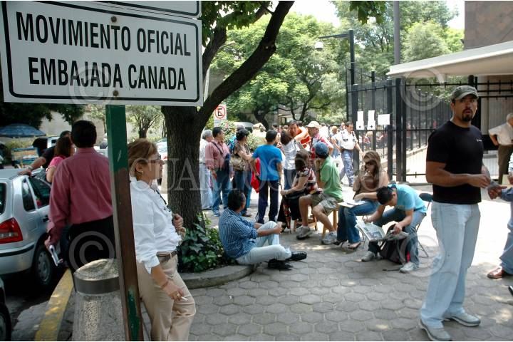 MÉXICO, D.F., 17JULIO2009.- Cientos de personas continúan formadas a las afueras de la embajada de Canada para tramitar la visa que exige este país a los mexicanos que quieran viajar a este destino. FOTO: RODOLFO ANGULO/CUARTOSCURO.COM