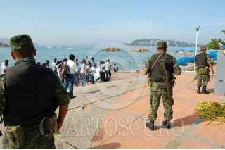 ACAPULCO, GUERRERO 17JULIO2009.- Un grupo de militares apostado en la zona turistica de Acapulco atento en la lucha frontalcontral el narcotrafico y asi detectar armas de fuego FOTO: MARINO D.VALDEZ/CUARTOSCURO.COM
