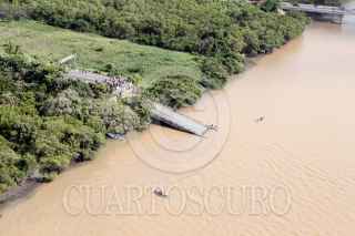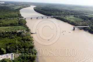 HUIMANGUILLO, TABASCO, 17JULIO2009.- Vista aérea panorámica en donde colapsa el puente del río Tonala. FOTO: MARCO POLO GUZMÁN HERNÁNDEZ/CUARTOSCURO.COM