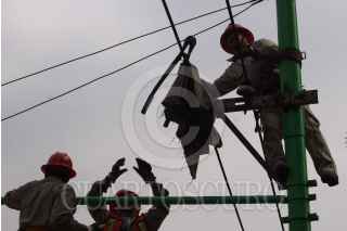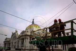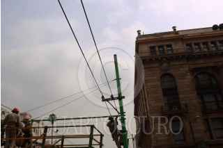 MÉXICO D.F., 17JULIO2009.- Personal de servicios públicos da mantenimiento a las guías eléctricas que forman parte del buen funcionamiento del trolebús. FOTO: SÁSHENKA GUTIERREZ/CUARTOSCURO.COM