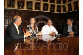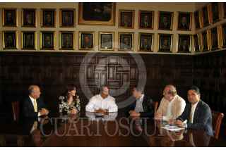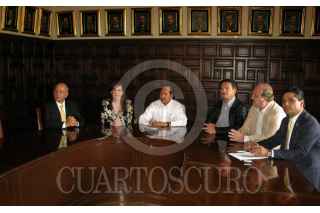 MORELIA, MICHOACAN, 19JULIO2009.- Los senadores del PRD, Carlos Navarrete Ruiz, Yeidckol Polevnsky Gurwitz, Jesús Garibay García, Silvano Aureoles Conejo y Graco Ramírez sostuvieron una reunión con el gobernador de Michoacán, Leonel Godoy Rangel, donde abordaron el tema de la situación que priva en la entidad tras el aribo de efectivos militares y policías federales. FOTO: CUARTOSCURO.COM