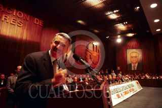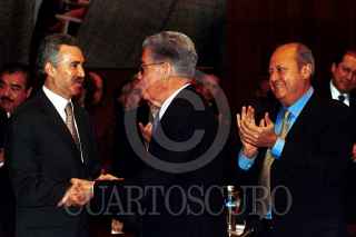 Roberto Madrazo, presidente nacional del Partido Revolucionario Institucional, asistió a la inauguración de la CXXVI Asamblea General Ordinaria de la Confederación de Trabajadores de México y fue recibido por Leonardo Rodríguez Alcaine, secretario general de la CTM. FOTO: Oswaldo Ramírez/CUARTOSCURO.COM