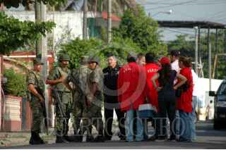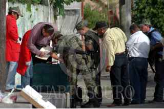 BOCA DEL RÍO, VERACRUZ, 20JULIO2009.- Luego de una llamada a la central de emergencias de gobierno del estado realizada por vecinos reportando la presencia de tres maletas de viaje depositadas sobre la acera de la calle de El Universal, entre Ovaciones y Dictamen, de la colonia Carranza, al sur de la zona conurbada Veracruz-Boca del Río, se monto un operativo entre el ejército, policía intermunicipal y federal. Una primera versión indicaba que se trataba de al menos dos cuerpos mutilados o hasta de armamento de alto poder, pero luego de hora y media se procedió a la apertura de las mismas donde solo se encontró ropa tanto de mujer como de varón. FOTO: JOSÉ CANDELARIO/CUARTOSCURO.COM