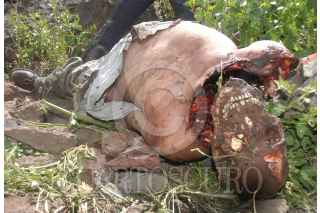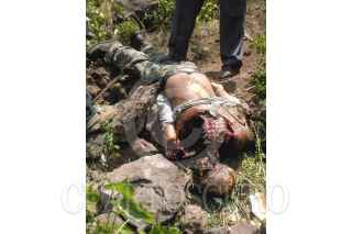 LOS REYES LA PAZ, EDO.DEMÉX. 22JULIO2009.-Un sujeto fue encontrado sin vida, con huellas de tortura y con varios disparos de arma de fuego, mismo que presentaba el rostro calcomido por la fauna silvestre, los hechos se registrarón en el paraje conocido como Las Plumas a la altura del Km. 19 de la Autopista a Puebla en perimetro del Municipio de Los Reyes la Paz. FOTO: LUIS CARBAYO/CUARTOSCURO.COM