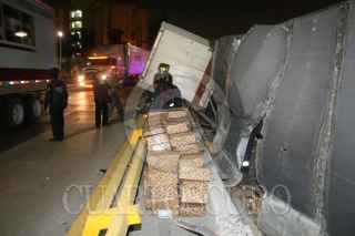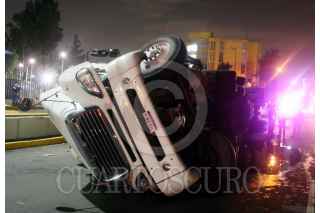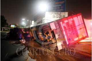 MÉXICO, D.F., 23JULIO2009.- Un trailer con carga de equipo electrónico, volcó esta madrugada en los carriles centrales del Circuito Interior frente al monumento La Raza, provocando gran caos vehicular por mas de dos horas. FOTO: LUZ ACEVEDO/CUARTOSCURO.COM