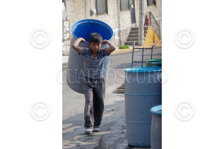 MÉXICO, D.F., 23JULIO2009.- Piperos llenan 2 veces por semana los tambos de vecinos de la colonia conocida como el mirador de la delegación Gustavo A. Madero donde por mas de 20 años han sufrido la falta de agua a pesar de que ya cuentan con la tubería y el drenaje necesario para surtir el liquido, estos piperos solo surte 4 tambos por familia, desde muy temprano llegan a las calles donde los colonos forman sus tambos para la repartición de agua FOTO: RICARDO CASTELAN/CUARTOSCURO.COM