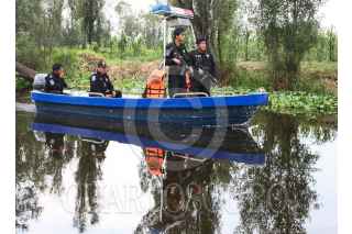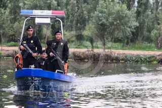 MÉXICO. D.F., 23JULIO2008.- La policia rivereña adscritos a la Secretaria de Seguridad Pública del D.F., patrullan por canales Xochimilco para reforzar la seguridad en esta temporada vacacional. FOTO: SAÚL LÓPEZ/CUARTOSCURO.COM