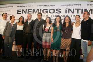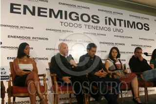 MÉXICO D.F.. 24JULIO2009.- Lenny Zundel, Blanca Sánchez Dolores Heredia Damián Bichir, Ximena Sariñana, Sharon Zundel, Verónica Merchant y Daniel Martínez, quienes forman parte del elenco acompañados de la guionista Carolina Rivera y del reconocido director Fernando Sariñana, en conferencia ante los medios de comunicación dieron a conocer los pormenores de su más reciente trabajo cinematográfico que lleva como titulo “Enemigo Íntimo” que se presentara a partir del próximo de 07 de Agosto de este año. FOTO: GUILLERMO PEREA/CUARTOSCURO.COM