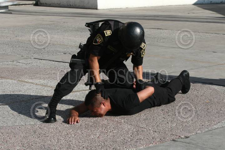 MÉXICO. D.F., 25JULIO2008.- Elementos del grupo táctico de las fuerzas especiales de la Agencia de Seguridad Estatal (ASE), son entrenados tres veces a la semana como parte de su trabajo para hacer frente al crimen organizado y narcotráfico. Dentro del entrenamiento incluyen platicas de ética, situaciones legales y toma de decisiones más prudentes para afrontar situaciones difíciles. FOTO: SAÚL LÓPEZ/CUARTOSCURO.COM
