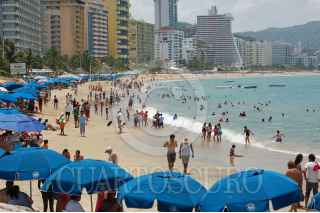 ACAPULCO, GUERRERO, 26JULIO2009.- Turistas nacionales se recrean en las calidas aguas de Acapulco, Guerrero, la grafica de la playa Pagayo donde el oleaje es tranquilo FOTO: MARINO D. VALDEZ/CUARTOSCURO.COM