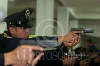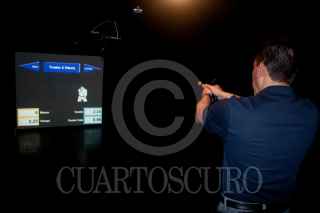 MÉXICO, D.F., 28JULIO2009.- La Secretaria de Seguridad Publica del Distrito Federal, comenzó la capacitación de tiro con tecnología láser, esta nueva tecnología lleva como nombre, "Unidad de capacitación con simulador de tiro láser". FOTO: RICARDO CASTELAN/CUARTOSCURO.COM