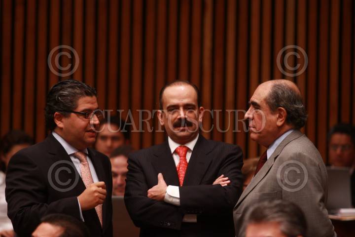MÉXICO, D.F., 28JULIO2009.- El senador perredista Pablo Gomez conversa con el consejero Virgilio Andrade durante la Sesion extraordinaria del consejo general del Instituto Federal Electoral FOTO:SÁSHENKA GUTIÉRREZ/CUARTOSCURO.COM