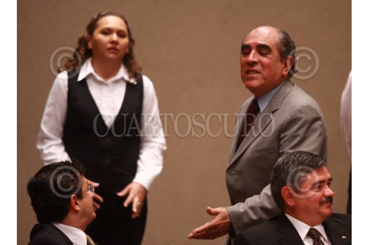MÉXICO, D.F., 28JULIO2009.- El senador perredista Pablo Gomez conversa con el consejero Virgilio Andrade durante la Sesion extraordinaria del consejo general del Instituto Federal Electoral FOTO:SÁSHENKA GUTIÉRREZ/CUARTOSCURO.COM