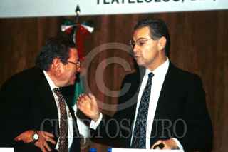 Gilberto Rincón Gallardo, presidente de la asociación civil contra la discriminación, saluda a Luis Ernesto Derbez, secretario de Relaciones Exteriores, durante el acto inagural del Foro Internacional por la No Discriminación, en donde de abordaron temas a favor de los derechos humanos de la gente con discapasidad. FOTO: EUnice Adorno/CUARTOSCURO.COM