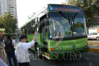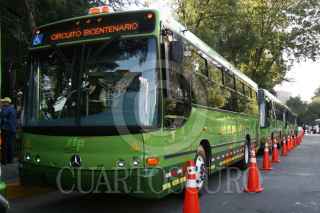 MÉXICO D.F., 30JULIO2009.- El jefe de gobierno dio el banderazo de salida con el cual se dio el inicio de operaciones del Servicio Expreso Circuito Bicentenario, el cual brindara un servicio 100 por ciento de accesibilidad apersonas con discapacidad motriz y visual, este servicio contara con 50 unidades y recorrerá 43 Km. en ambos sentidos sobre Circuito Interior. FOTO: GUILLERMO PEREA/CUARTOSCURO.COM