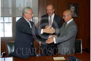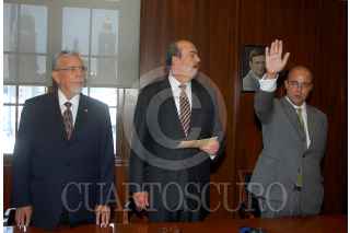 MÉXICO, D.F., 31JULIO2009.- Jorge Arganis Díaz Leal, exsecretario de Obras Públicas; José Ángel Ávila Pérez, secretario de Gobierno y Fernando Aboitiz Saro, actual secretario de Obras Públicas, durante la ceremonia en la que tomo posesión de la Secretaria de Obras Públicas. FOTO: CUARTOSCURO.COM