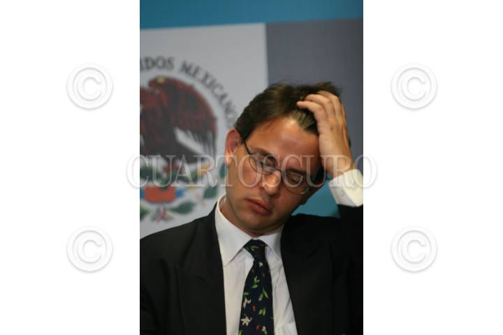 MÉXICO D.F., 31JULIO2009.- Miguel Messmacher Linartas, titular de la Unidad de Planeación Económica de la Hacienda Pública, acompañado de Juan Manuel Pérez Porrúa y Rodrigo Brand de Lara, durante la conferencia ofrecida ante los representantes de los medios de comunicación dio a conocer que ante la disminución de los ingresos públicos, la SHCP, prevé la reducción gradual de algunos subsidios para el próximo año. FOTO: GUILLERMO PEREA/CUARTOSCURO.COM
