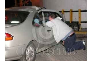 MÉXICO, D.F., 01AGOSTO2009.- En los carriles laterales del viaducto y la avenida Añil un automóvil Nissan placas 425 LEK, se estrello con la barda protectora de las oficinas de Telmex, el saldo fue de un muerto de nombre Benjamín Huerta Medina de 21 años que viajaba en el asiento del copiloto. En la imagen el padre del occiso llorando su muerte pues era quien manejaba la unidad. FOTO: LUZ ACEVEDO/CUARTOSCURO.COM