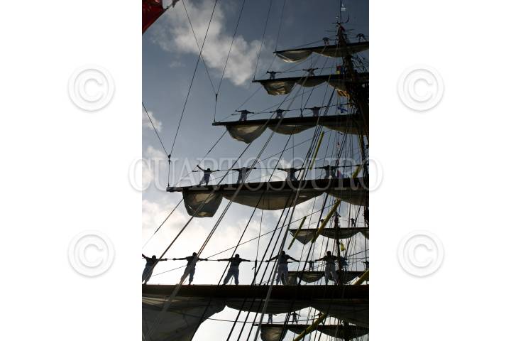 ACAPULCO, GUERRERO, 01AGOSTO2009.- 260 tripulantes arribaron esta mañana en el buque escuela velero Cuauhtémoc de la Marina - Armada de México que finalizo su viaje de instrucción por diversos puertos del mundo. Este buque escuela zarpo del puerto de Acapulco el día 15 de febrero surcando el océano Pacífico hacia el lejano oriente en el que participo en los 400 años de la comunicación marítima entre México y Asia; dicha travesía tuvo una duración de 166 días. FOTO: RODOLFO ANGULO/CUARTOSCURO.COM