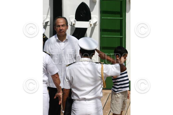 ACAPULCO, GUERRERO, 01AGOSTO2009.- 260 tripulantes arribaron esta mañana en el buque escuela velero Cuauhtémoc de la Marina - Armada de México que finalizo su viaje de instrucción por diversos puertos del mundo. Este buque escuela zarpo del puerto de Acapulco el día 15 de febrero surcando el océano Pacífico hacia el lejano oriente en el que participo en los 400 años de la comunicación marítima entre México y Asia; dicha travesía tuvo una duración de 166 días. FOTO: RODOLFO ANGULO/CUARTOSCURO.COM