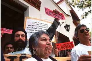 El grupo"Comité del 68" clausuraron de manera simbolica el Centro Cultural Jesús Reyes Heroles, para manifestarse que no es merecido que el ex secretrio de eduacación, forme parte de la rotonda de hombres ilustres, a causa de ser un supuesto complice de la matanza estudiantil de 1968. FOTO: Eunice Adorno/CUARTOSCURO.COM