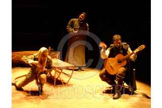 MÉXICO, D.F., 03AGOSTO2009.- Montada bajo la dirección de Bruno Bert, motivado por la existencia de "un renacimiento de Brecht, surgido a la par de un movimiento revisionista desde la perspectiva de la política internacional, acerca de si es vigente el teatro didáctico”, el crítico y director teatral, decidió montar "Madre Coraje", después de 20 años de ausencia de los escenarios. La puesta en escena que se estrenó el pasado sábado en el teatro Salvador Novo del Centro Nacional de las Artes, cuenta con la participación de los alumnos de tercer año de la Licenciatura en Actuación y Escenografía de la Escuela Nacional de Arte Teatral (INBA-Conaculta), como parte de su proceso académico. Cabe destacar que este trabajo marca su debut en escena, es decir, se trata de su primera experiencia real ante el público. FOTO: ENAT/CONACULTA/CUARTOSCURO.COM
