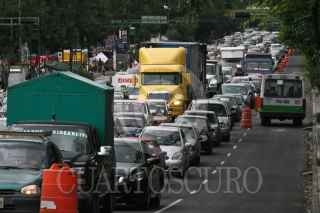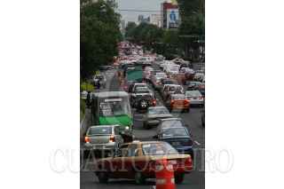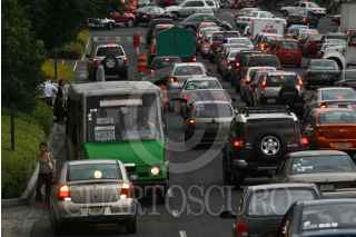MÉXICO, D.F., 03AGOSTO2009.- Un intensa carga vehicular se registró este lunes en el Eje 1 Poniente, luego de que microbuses que circulaban sobre el Eje Central comenzaron a utilizar el carril de contraflujo en esta arteria, debido a la entrada en opración del Corredor Cero Emisiones. FOTO: ISAAC ESQUIVEL/CUARTOSCURO.COM