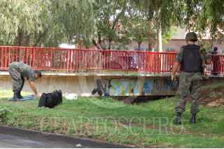 MORELIA, MICHOACÁN, 04AGOSTO2009.- Esta mañana fue encontrada una granada de fragmentación activada (sin espoleta) por personal de aseo público en las inmediaciones de un centro comercial en la colonia Felix Ireta de Morelia, al lugar arribaron elementos de diversas corporaciones policíacas y del Ejército Mexicano especialistas en explosivos. FOTO: LEOVIGILDO GONZÁLEZ/CUARTOSCURO.COM
