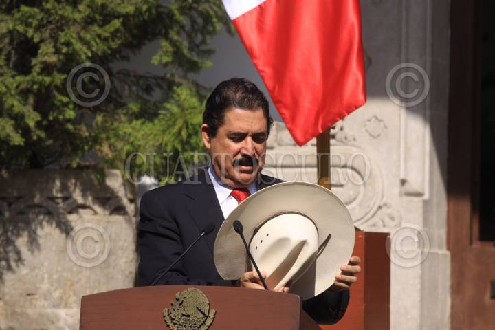 MÉXICO, D.F., 04AGOSTO2009.- El presidente de Honduras, Manuel Zelaya camina con el mandatario mexicano Felipe Calderón al termino de la conferncia ofrecida por ambos en la residencia oficial de los pinos FOTO: SÁSHENKA GUTIERREZ/CUARTOSCURO.COM