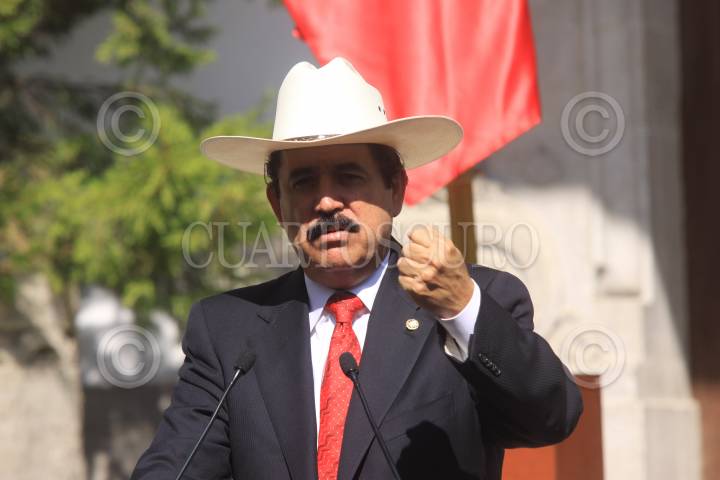 MÉXICO, D.F., 04AGOSTO2009.- El presidente de Honduras, Manuel Zelaya camina con el mandatario mexicano Felipe Calderón al termino de la conferncia ofrecida por ambos en la residencia oficial de los pinos FOTO: SÁSHENKA GUTIERREZ/CUARTOSCURO.COM