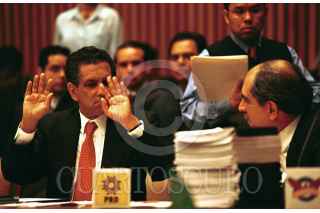 Con ocho votos a favor y una abstención el Instituto Federal Electoral (IFE) determinó multar al PRI con mil millones de pesos por no haber reportado que recibió 500 millones de pesos del sindicato de Petróleos Mexicanos (PEMEX) para la campaña de Francisco Labastida Ochoa en el 2000. En la imágen, José Woldemberg y Jaime Cárdenas, ambos consejeros del IFE. FOTO: Pedro Mera/CUARTOSCURO.COM